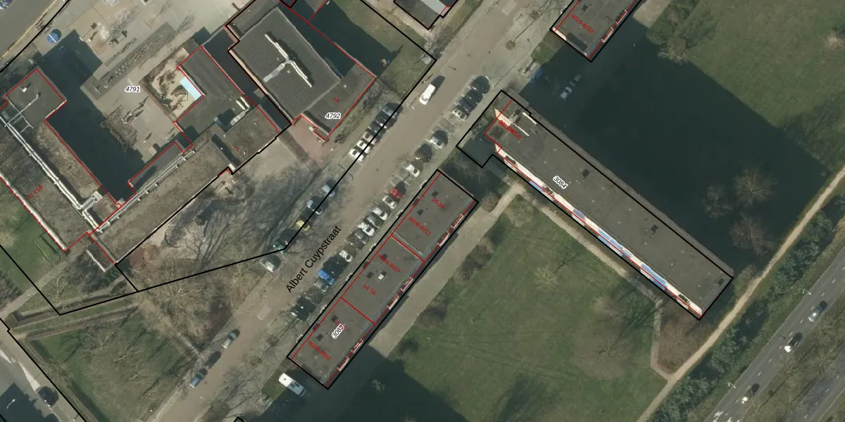 Het perceel waarop Albert Cuypstraat 32 staat heeft een oppervlakte van 706 m². Dit is een groot perceel. De perceeloppervlakte wordt geregistreerd door het Kadaster. Gedetailleerde informatie over de maten van dit perceel kunt u vinden in het rapport Kadastrale kaart met maatvoering van Albert Cuypstraat 32.
