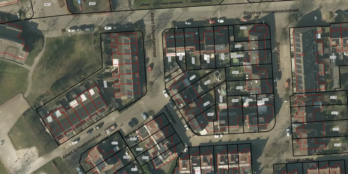 Gebruik de zoekbalk of klik op een perceel voor informatie over de adressen binnen dit perceel.