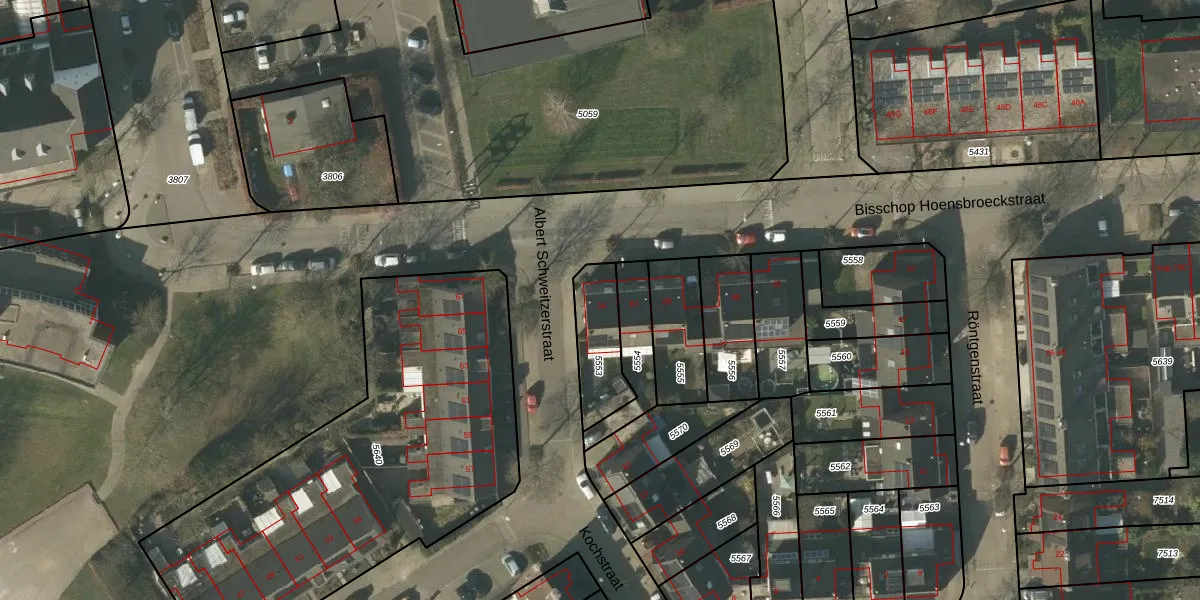 Albert Schweitzerstraat 34 is gelegen op kadastraal perceel VLO00A5553. Deze kadastrale aanduiding is uniek en wordt gebruikt door het Kadaster om eigendomsrechten en andere zakelijke rechten vast te leggen. Het perceel maakt onderdeel uit van de kadastrale gemeente Venlo.