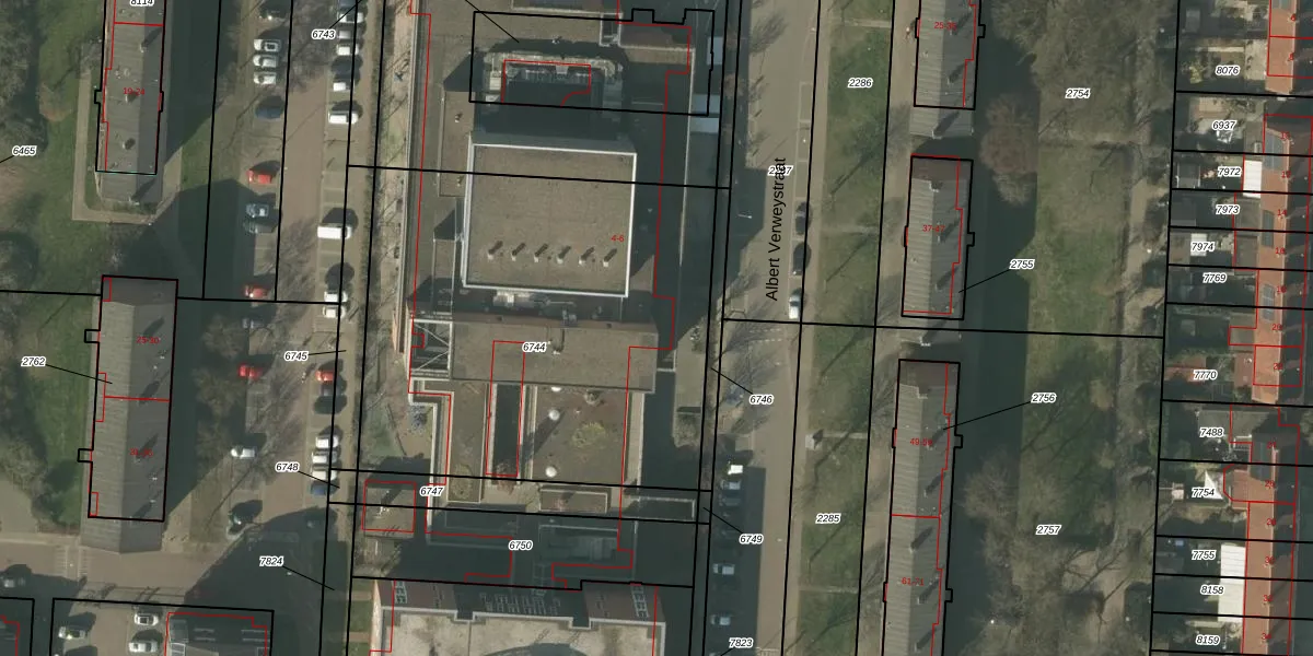 Albert Verweystraat 6 is gelegen op kadastraal perceel VLO00M6744. Deze kadastrale aanduiding is uniek en wordt gebruikt door het Kadaster om eigendomsrechten en andere zakelijke rechten vast te leggen. Het perceel maakt onderdeel uit van de kadastrale gemeente Venlo.