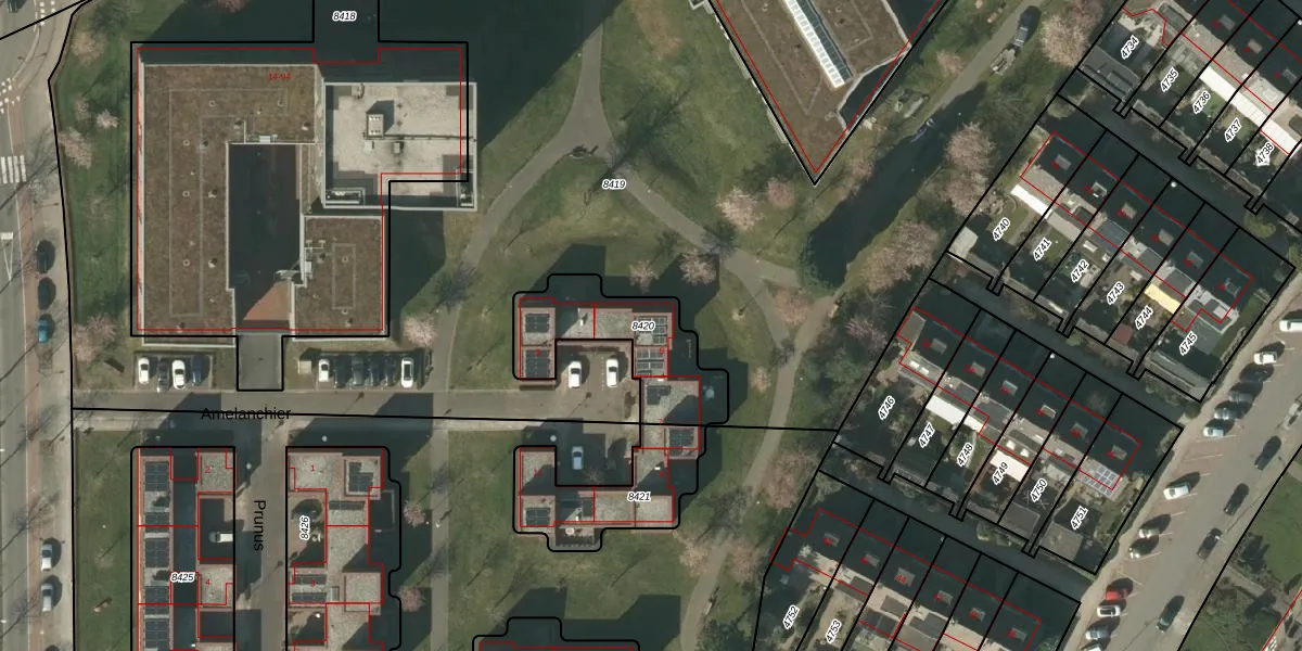 Het perceel waarop Amelanchier 5 staat heeft een oppervlakte van 401 m². Dit is een groot perceel. De perceeloppervlakte wordt geregistreerd door het Kadaster. Gedetailleerde informatie over de maten van dit perceel kunt u vinden in het rapport Kadastrale kaart met maatvoering van Amelanchier 5.