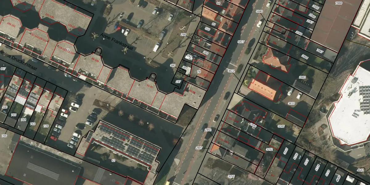Het perceel waarop Anne Frankstraat 83 staat heeft een oppervlakte van 3142 m². Dit is een zeer groot perceel. De perceeloppervlakte wordt geregistreerd door het Kadaster. Gedetailleerde informatie over de maten van dit perceel kunt u vinden in het rapport Kadastrale kaart met maatvoering van Anne Frankstraat 83.