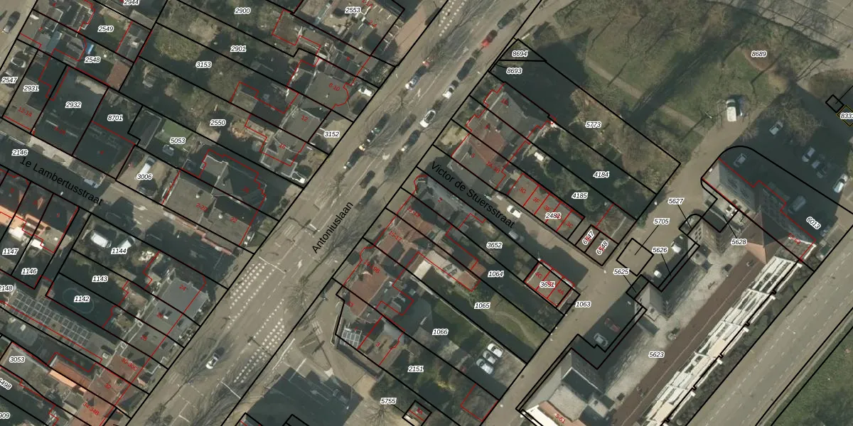 Antoniuslaan 13 is gelegen op kadastraal perceel VLO00M1064. Deze kadastrale aanduiding is uniek en wordt gebruikt door het Kadaster om eigendomsrechten en andere zakelijke rechten vast te leggen. Het perceel maakt onderdeel uit van de kadastrale gemeente Venlo.