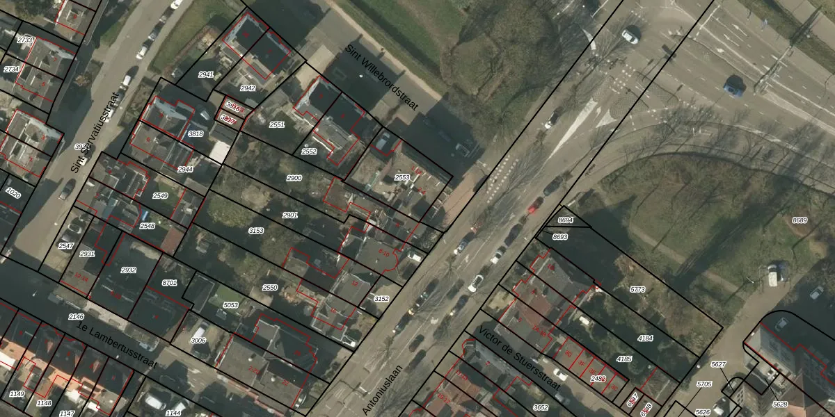 Antoniuslaan 4 is gelegen op kadastraal perceel VLO00M2553. Deze kadastrale aanduiding is uniek en wordt gebruikt door het Kadaster om eigendomsrechten en andere zakelijke rechten vast te leggen. Het perceel maakt onderdeel uit van de kadastrale gemeente Venlo.