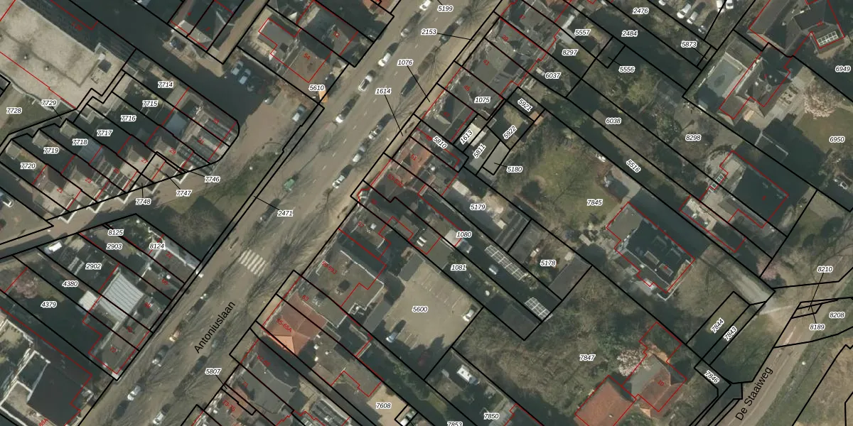 Antoniuslaan 53-B is gelegen op kadastraal perceel VLO00M1080. Deze kadastrale aanduiding is uniek en wordt gebruikt door het Kadaster om eigendomsrechten en andere zakelijke rechten vast te leggen. Het perceel maakt onderdeel uit van de kadastrale gemeente Venlo.