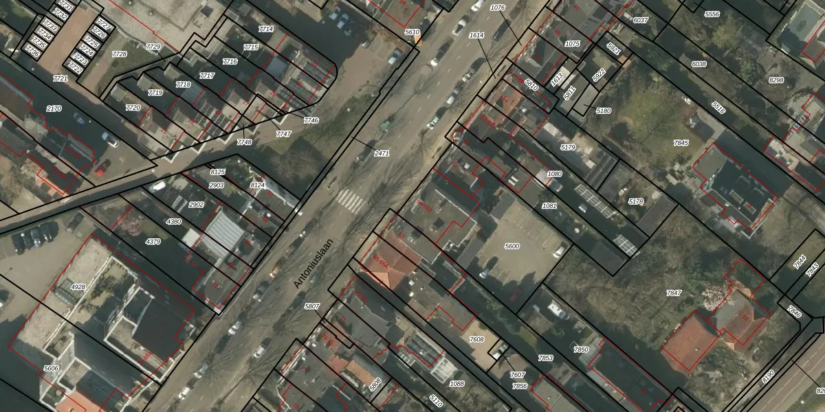 Het perceel waarop Antoniuslaan 59-F staat heeft een oppervlakte van 855 m². Dit is een groot perceel. De perceeloppervlakte wordt geregistreerd door het Kadaster. Gedetailleerde informatie over de maten van dit perceel kunt u vinden in het rapport Kadastrale kaart met maatvoering van Antoniuslaan 59-F.