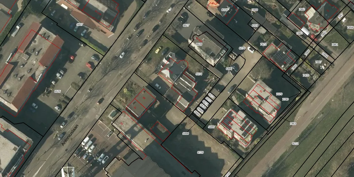 Antoniuslaan 87-A is gelegen op kadastraal perceel VLO00M5574. Deze kadastrale aanduiding is uniek en wordt gebruikt door het Kadaster om eigendomsrechten en andere zakelijke rechten vast te leggen. Het perceel maakt onderdeel uit van de kadastrale gemeente Venlo.