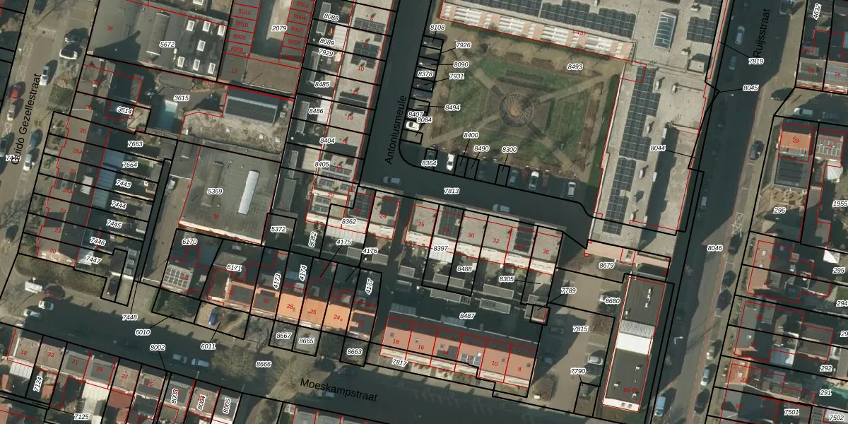 Het perceel waarop Antoniusmeule 26 staat heeft een oppervlakte van 1185 m². Dit is een zeer groot perceel. De perceeloppervlakte wordt geregistreerd door het Kadaster. Gedetailleerde informatie over de maten van dit perceel kunt u vinden in het rapport Kadastrale kaart met maatvoering van Antoniusmeule 26.