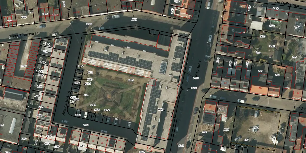 Het perceel waarop Antoniusmeule 91 staat heeft een oppervlakte van 4140 m². Dit is een zeer groot perceel. De perceeloppervlakte wordt geregistreerd door het Kadaster. Gedetailleerde informatie over de maten van dit perceel kunt u vinden in het rapport Kadastrale kaart met maatvoering van Antoniusmeule 91.