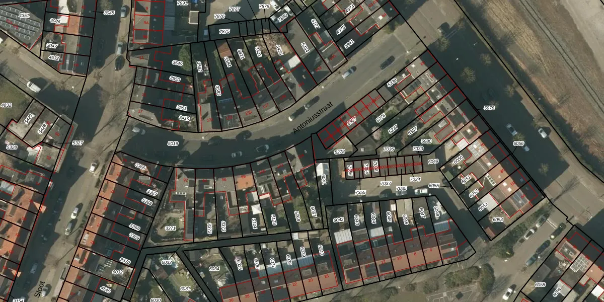 Gebruik de zoekbalk of klik op een perceel voor informatie over de adressen binnen dit perceel.