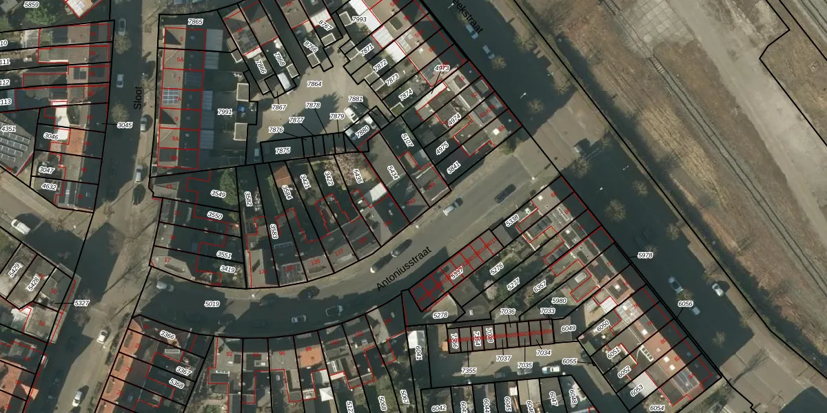 Gebruik de zoekbalk of klik op een perceel voor informatie over de adressen binnen dit perceel.