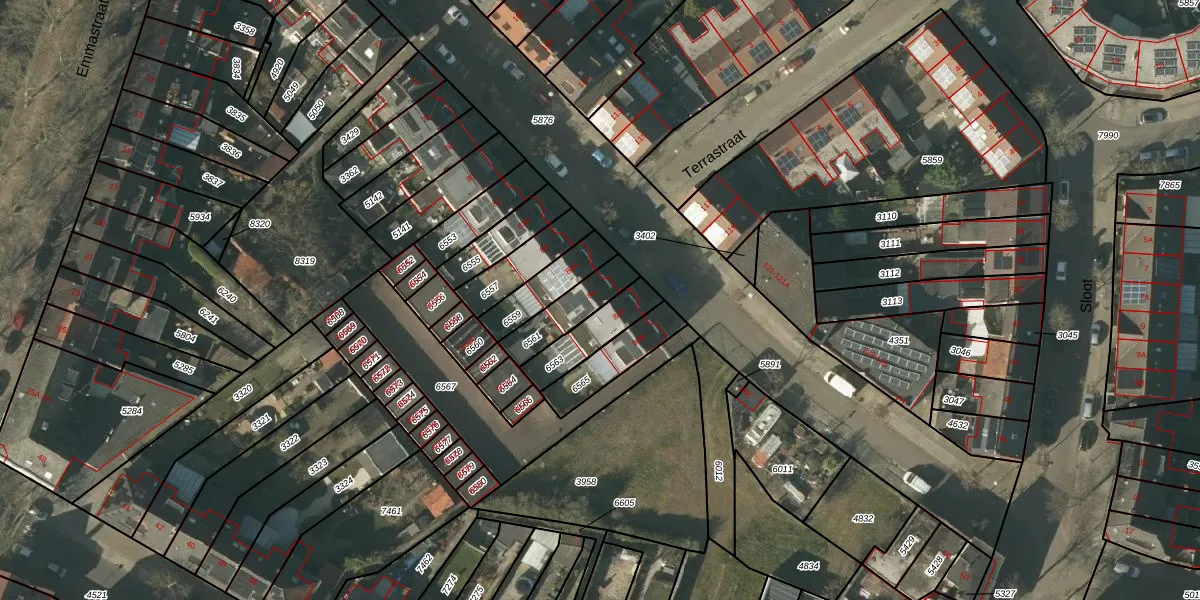 Gebruik de zoekbalk of klik op een perceel voor informatie over de adressen binnen dit perceel.
