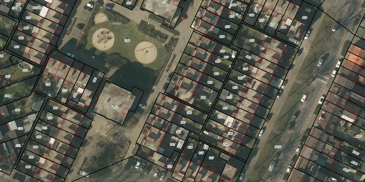 Het perceel waarop Ariënswei 21 staat heeft een oppervlakte van 334 m². Dit is een groot perceel. De perceeloppervlakte wordt geregistreerd door het Kadaster. Gedetailleerde informatie over de maten van dit perceel kunt u vinden in het rapport Kadastrale kaart met maatvoering van Ariënswei 21.