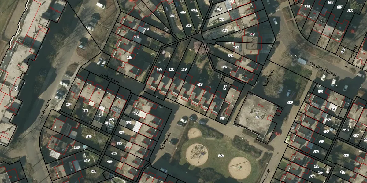 Het perceel waarop Ariënswei 32 staat heeft een oppervlakte van 507 m². Dit is een groot perceel. De perceeloppervlakte wordt geregistreerd door het Kadaster. Gedetailleerde informatie over de maten van dit perceel kunt u vinden in het rapport Kadastrale kaart met maatvoering van Ariënswei 32.