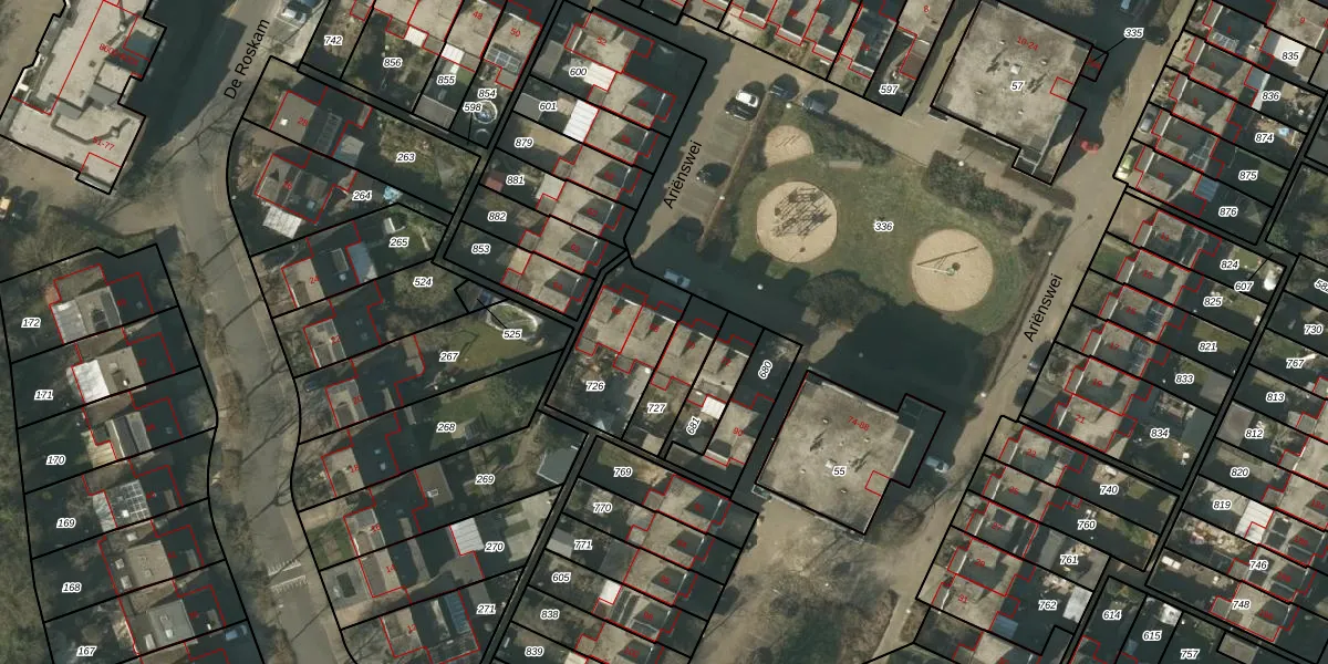 Het perceel waarop Ariënswei 68 staat heeft een oppervlakte van 311 m². Dit is een groot perceel. De perceeloppervlakte wordt geregistreerd door het Kadaster. Gedetailleerde informatie over de maten van dit perceel kunt u vinden in het rapport Kadastrale kaart met maatvoering van Ariënswei 68.