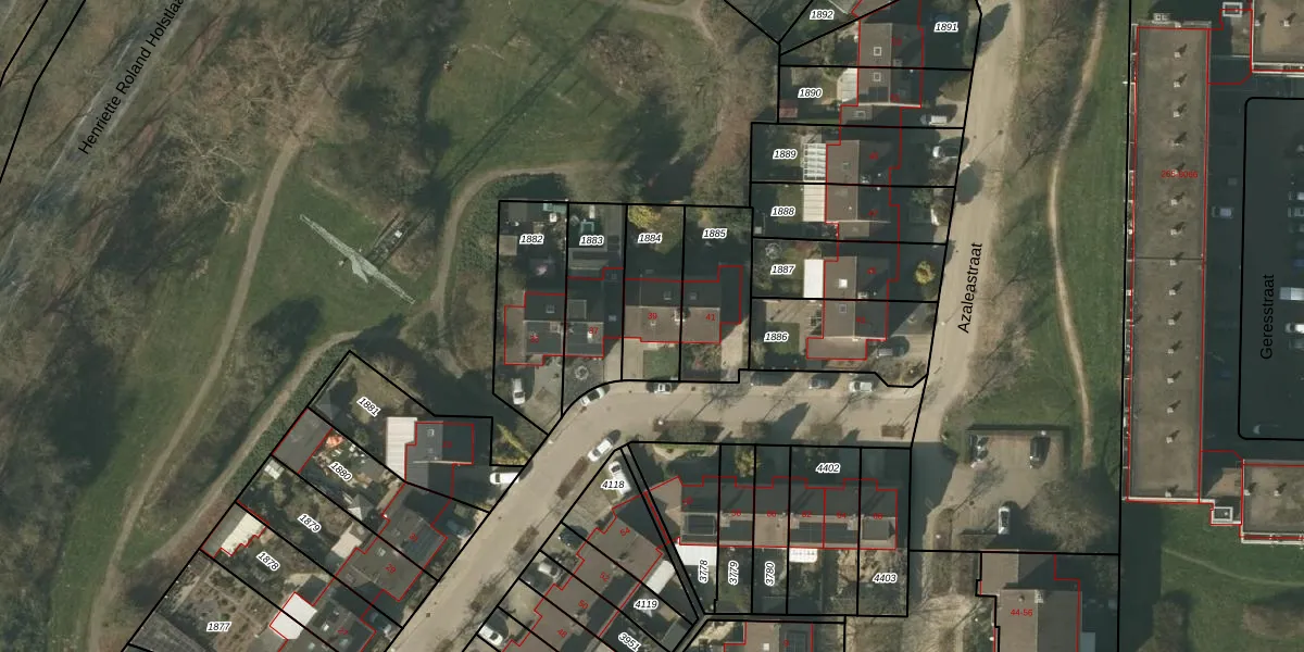 Gebruik de zoekbalk of klik op een perceel voor informatie over de adressen binnen dit perceel.
