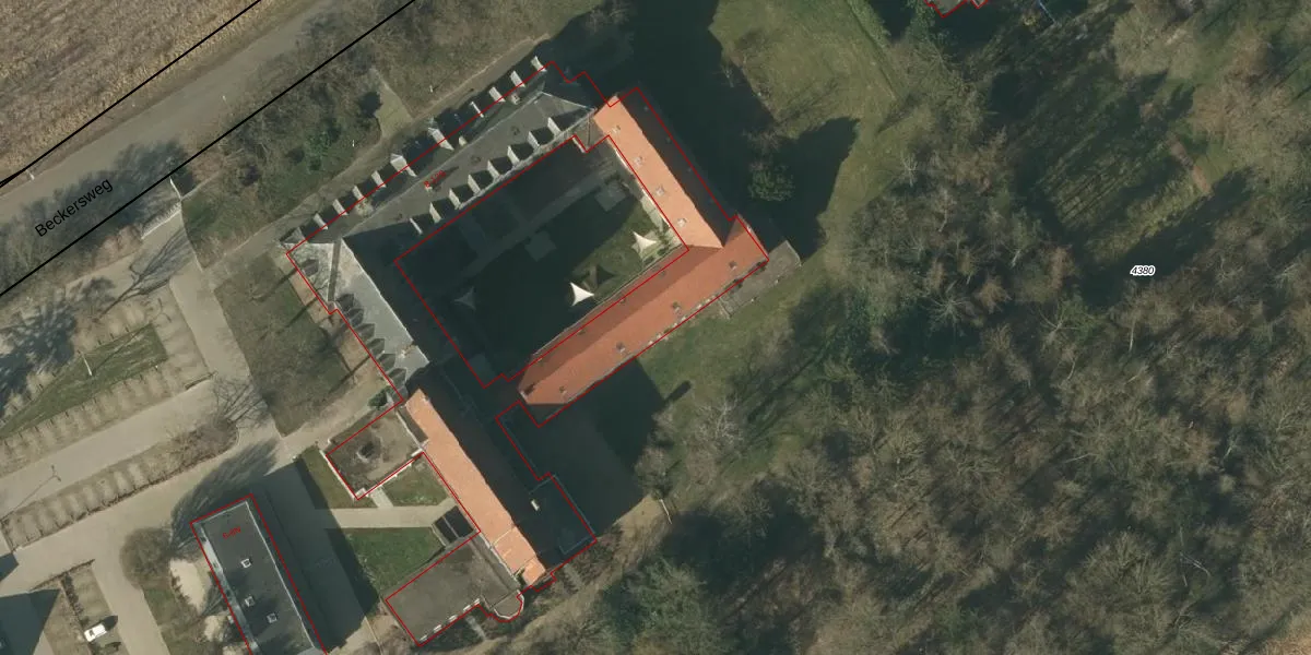 Het perceel waarop Beckersweg 12-L staat heeft een oppervlakte van 6,4 ha. Dit is een zeer groot perceel. De perceeloppervlakte wordt geregistreerd door het Kadaster. Gedetailleerde informatie over de maten van dit perceel kunt u vinden in het rapport Kadastrale kaart met maatvoering van Beckersweg 12-L.