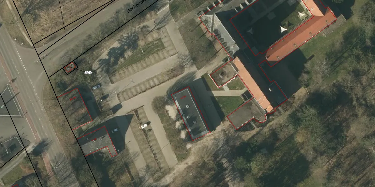Het perceel waarop Beckersweg 6 staat heeft een oppervlakte van 6,4 ha. Dit is een zeer groot perceel. De perceeloppervlakte wordt geregistreerd door het Kadaster. Gedetailleerde informatie over de maten van dit perceel kunt u vinden in het rapport Kadastrale kaart met maatvoering van Beckersweg 6.