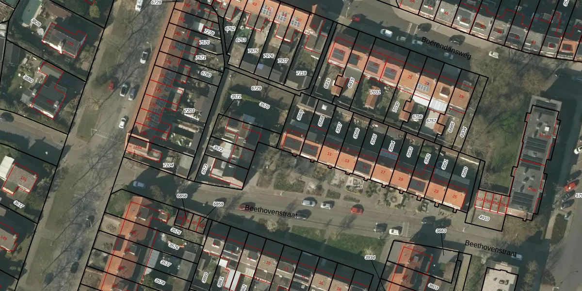 Beethovenstraat 7 is gelegen op kadastraal perceel VLO00A3569. Deze kadastrale aanduiding is uniek en wordt gebruikt door het Kadaster om eigendomsrechten en andere zakelijke rechten vast te leggen. Het perceel maakt onderdeel uit van de kadastrale gemeente Venlo.
