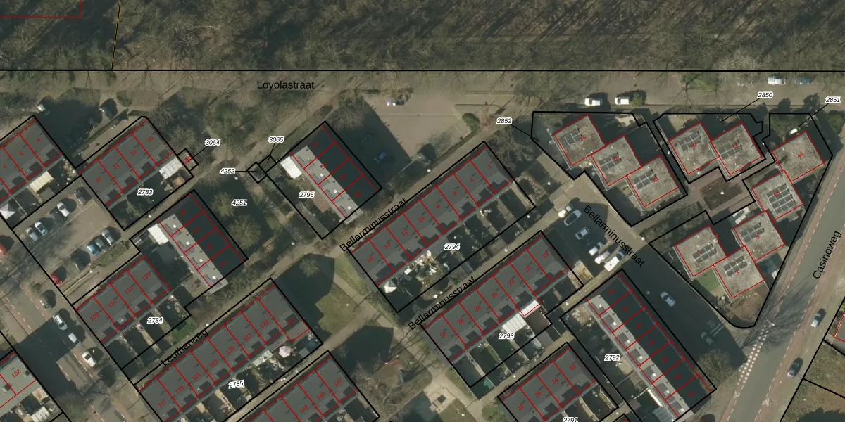 Bellarminusstraat 10 is gelegen op kadastraal perceel VLO00F2794. Deze kadastrale aanduiding is uniek en wordt gebruikt door het Kadaster om eigendomsrechten en andere zakelijke rechten vast te leggen. Het perceel maakt onderdeel uit van de kadastrale gemeente Venlo.