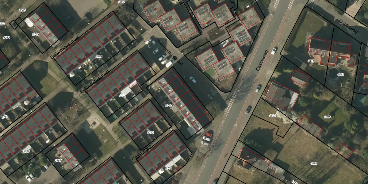 Bellarminusstraat 44 is gelegen op kadastraal perceel VLO00F2792. Deze kadastrale aanduiding is uniek en wordt gebruikt door het Kadaster om eigendomsrechten en andere zakelijke rechten vast te leggen. Het perceel maakt onderdeel uit van de kadastrale gemeente Venlo.