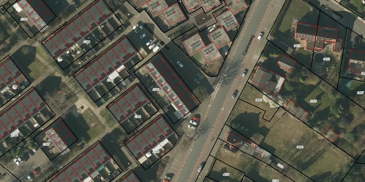 Bellarminusstraat 48 is gelegen op kadastraal perceel VLO00F2792. Deze kadastrale aanduiding is uniek en wordt gebruikt door het Kadaster om eigendomsrechten en andere zakelijke rechten vast te leggen. Het perceel maakt onderdeel uit van de kadastrale gemeente Venlo.
