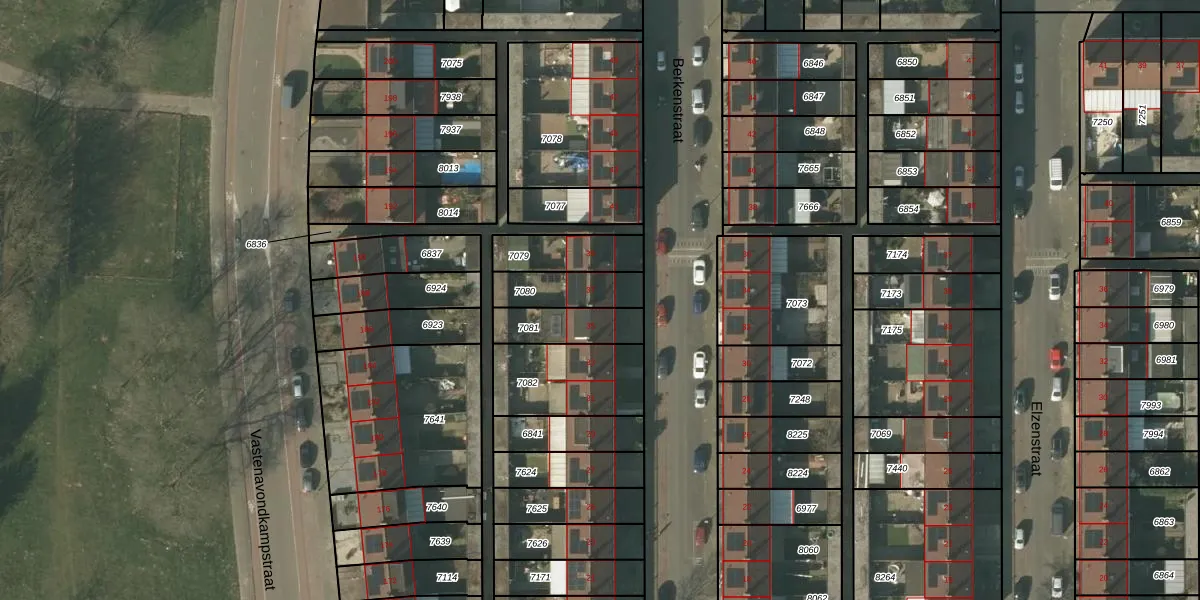 Gebruik de zoekbalk of klik op een perceel voor informatie over de adressen binnen dit perceel.