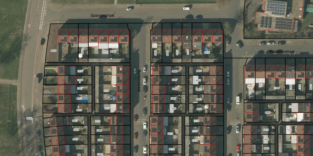 Gebruik de zoekbalk of klik op een perceel voor informatie over de adressen binnen dit perceel.