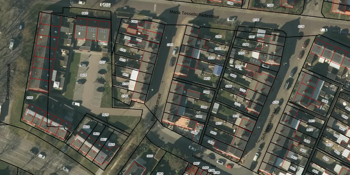 Gebruik de zoekbalk of klik op een perceel voor informatie over de adressen binnen dit perceel.