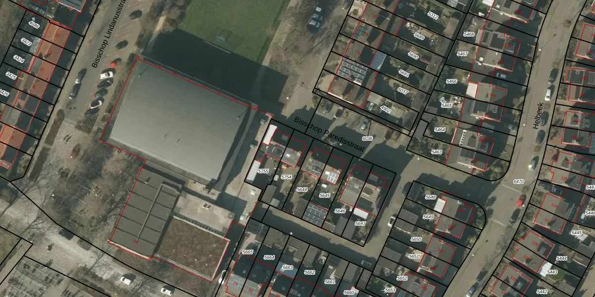 Bisschop Paredisstraat 9 is gelegen op kadastraal perceel VLO00A5754. Deze kadastrale aanduiding is uniek en wordt gebruikt door het Kadaster om eigendomsrechten en andere zakelijke rechten vast te leggen. Het perceel maakt onderdeel uit van de kadastrale gemeente Venlo.