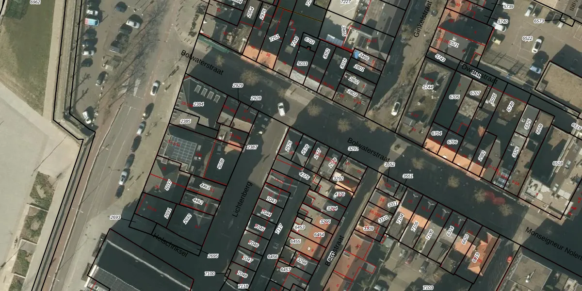 Bolwaterstraat 33 is gelegen op kadastraal perceel VLO00I2575. Deze kadastrale aanduiding is uniek en wordt gebruikt door het Kadaster om eigendomsrechten en andere zakelijke rechten vast te leggen. Het perceel maakt onderdeel uit van de kadastrale gemeente Venlo.