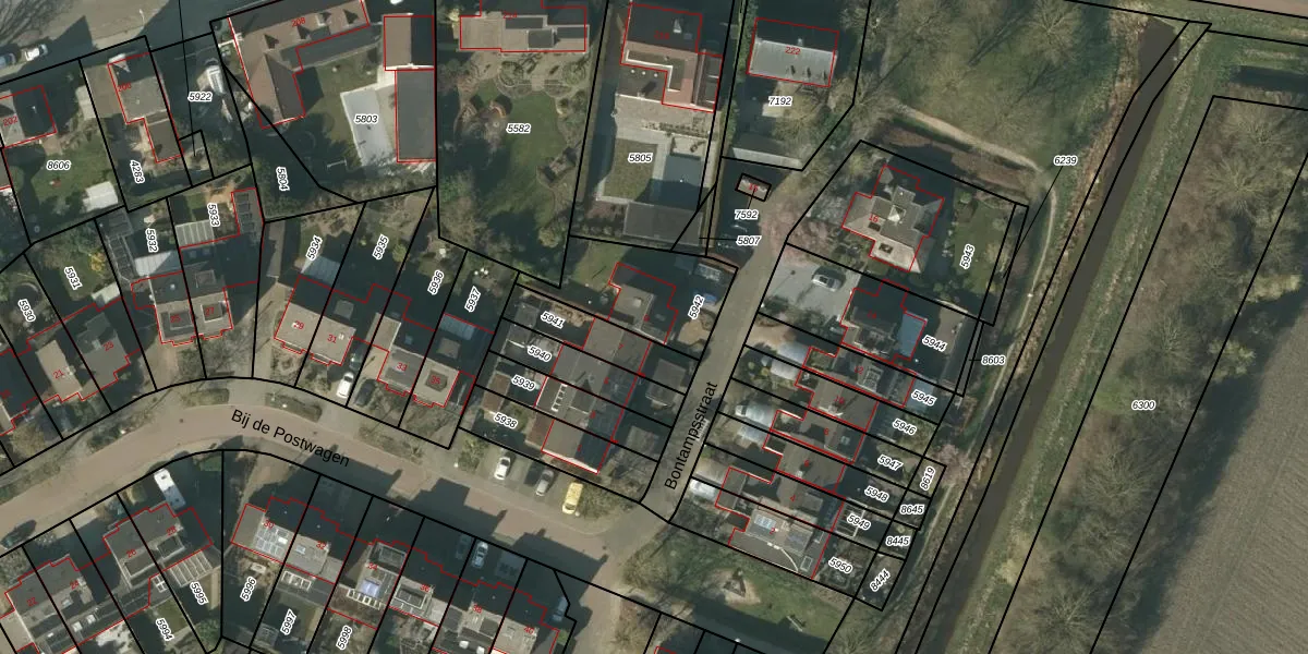 Gebruik de zoekbalk of klik op een perceel voor informatie over de adressen binnen dit perceel.