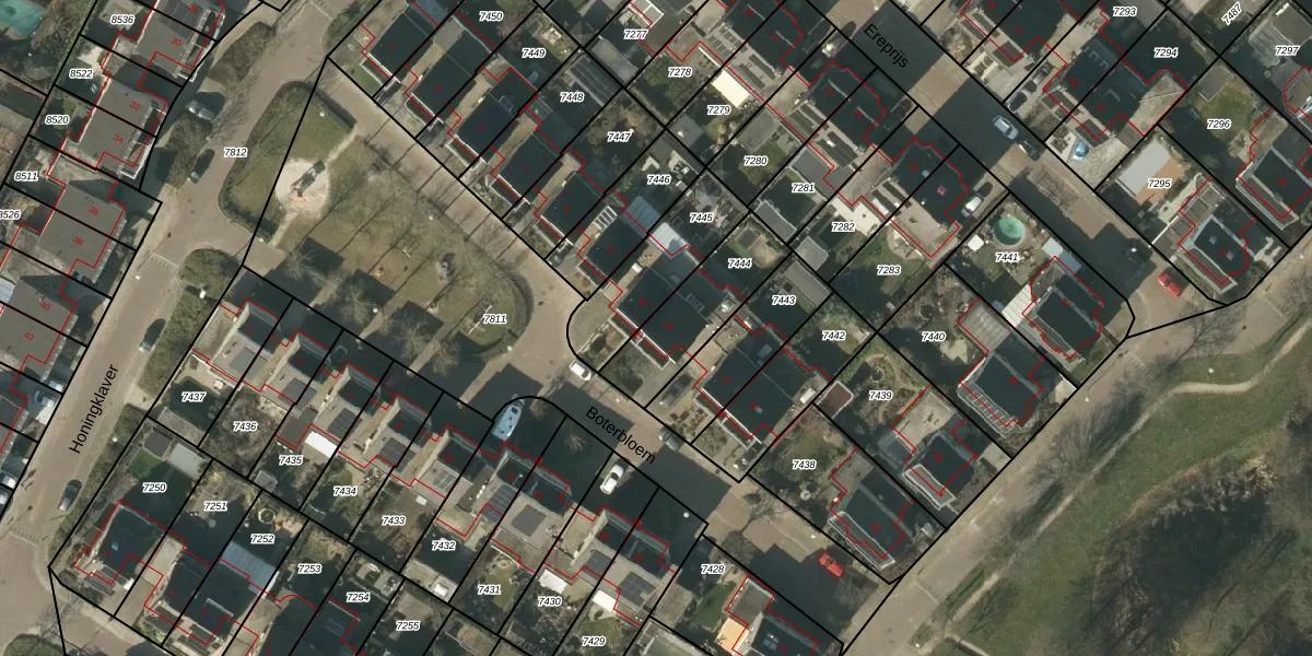 Boterbloem 15 is gelegen op kadastraal perceel VLO00D7444. Deze kadastrale aanduiding is uniek en wordt gebruikt door het Kadaster om eigendomsrechten en andere zakelijke rechten vast te leggen. Het perceel maakt onderdeel uit van de kadastrale gemeente Venlo.