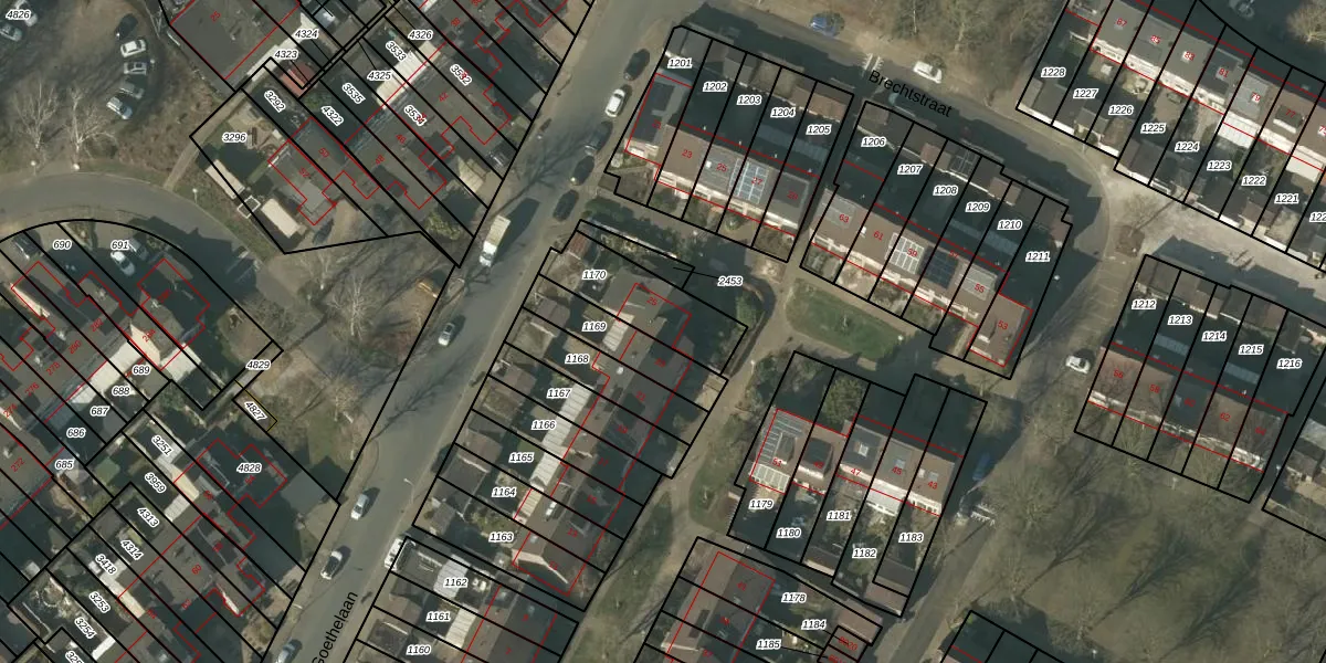 Gebruik de zoekbalk of klik op een perceel voor informatie over de adressen binnen dit perceel.