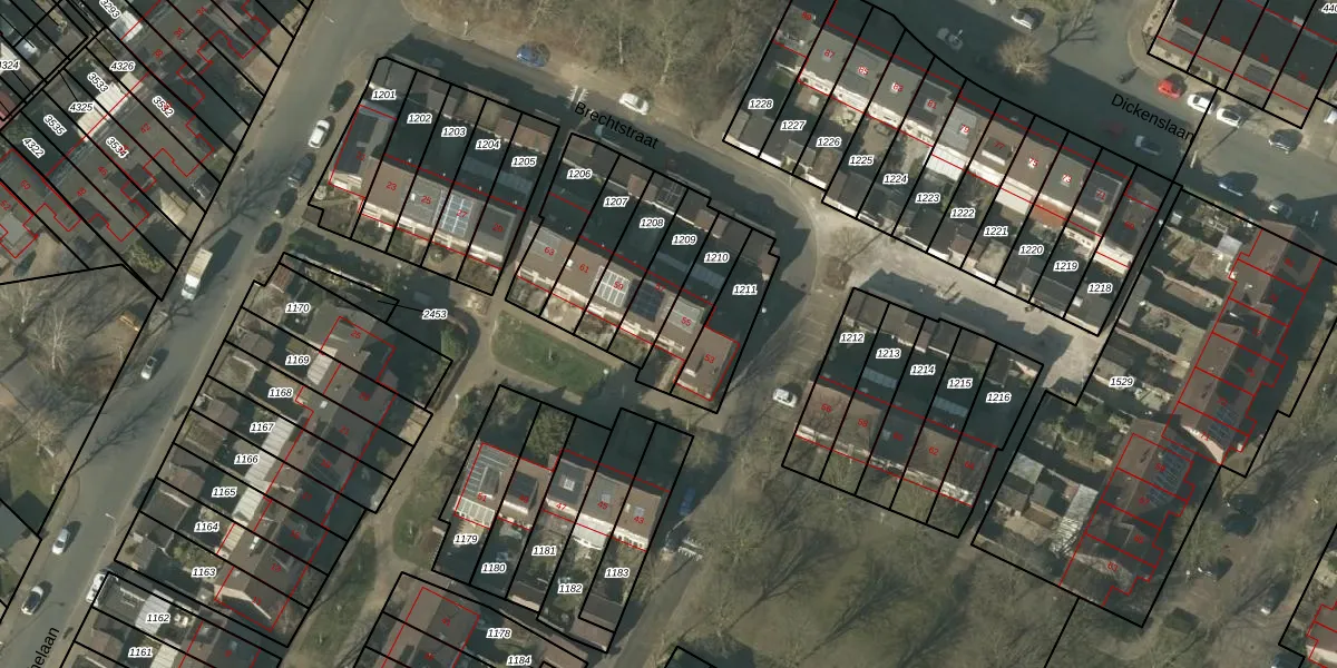 Het perceel waarop Brechtstraat 55 staat heeft een oppervlakte van 160 m². Dit is een middelgroot perceel. De perceeloppervlakte wordt geregistreerd door het Kadaster. Gedetailleerde informatie over de maten van dit perceel kunt u vinden in het rapport Kadastrale kaart met maatvoering van Brechtstraat 55.