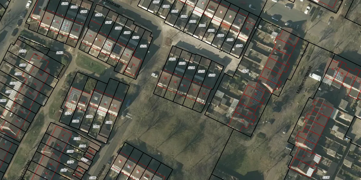 Gebruik de zoekbalk of klik op een perceel voor informatie over de adressen binnen dit perceel.