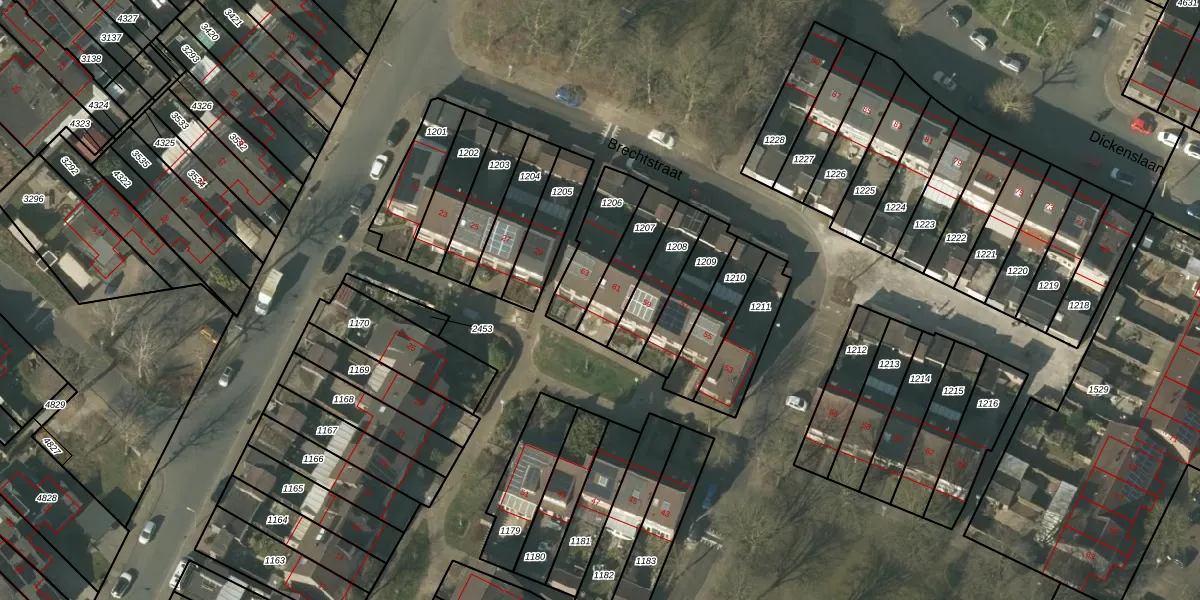 Het perceel waarop Brechtstraat 61 staat heeft een oppervlakte van 155 m². Dit is een middelgroot perceel. De perceeloppervlakte wordt geregistreerd door het Kadaster. Gedetailleerde informatie over de maten van dit perceel kunt u vinden in het rapport Kadastrale kaart met maatvoering van Brechtstraat 61.