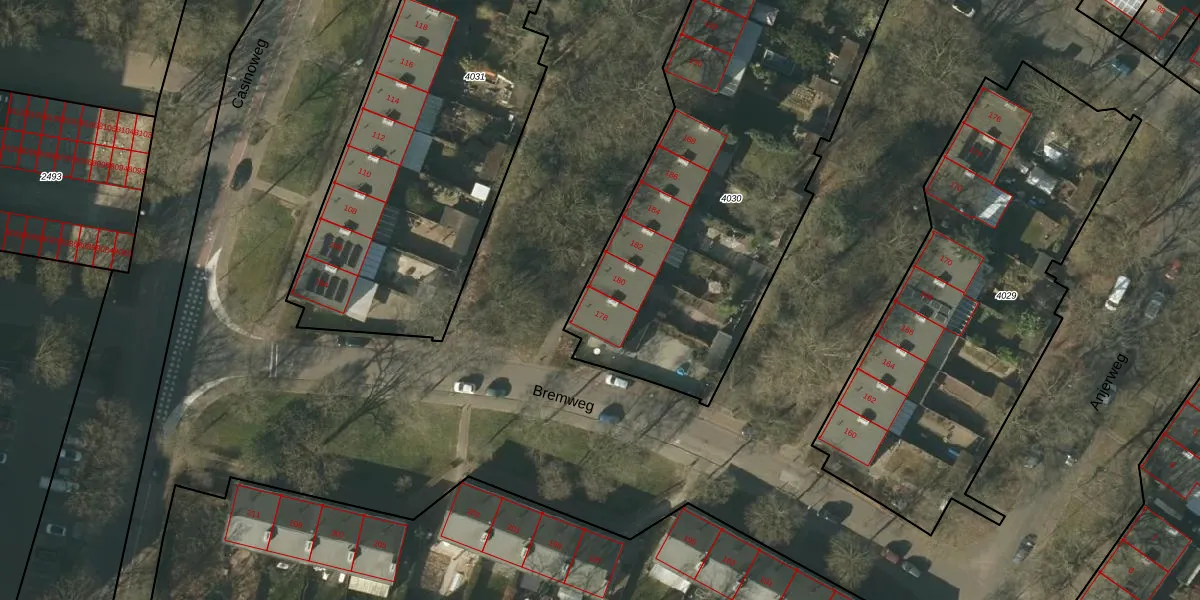Bremweg 178 is gelegen op kadastraal perceel VLO00F4030. Deze kadastrale aanduiding is uniek en wordt gebruikt door het Kadaster om eigendomsrechten en andere zakelijke rechten vast te leggen. Het perceel maakt onderdeel uit van de kadastrale gemeente Venlo.
