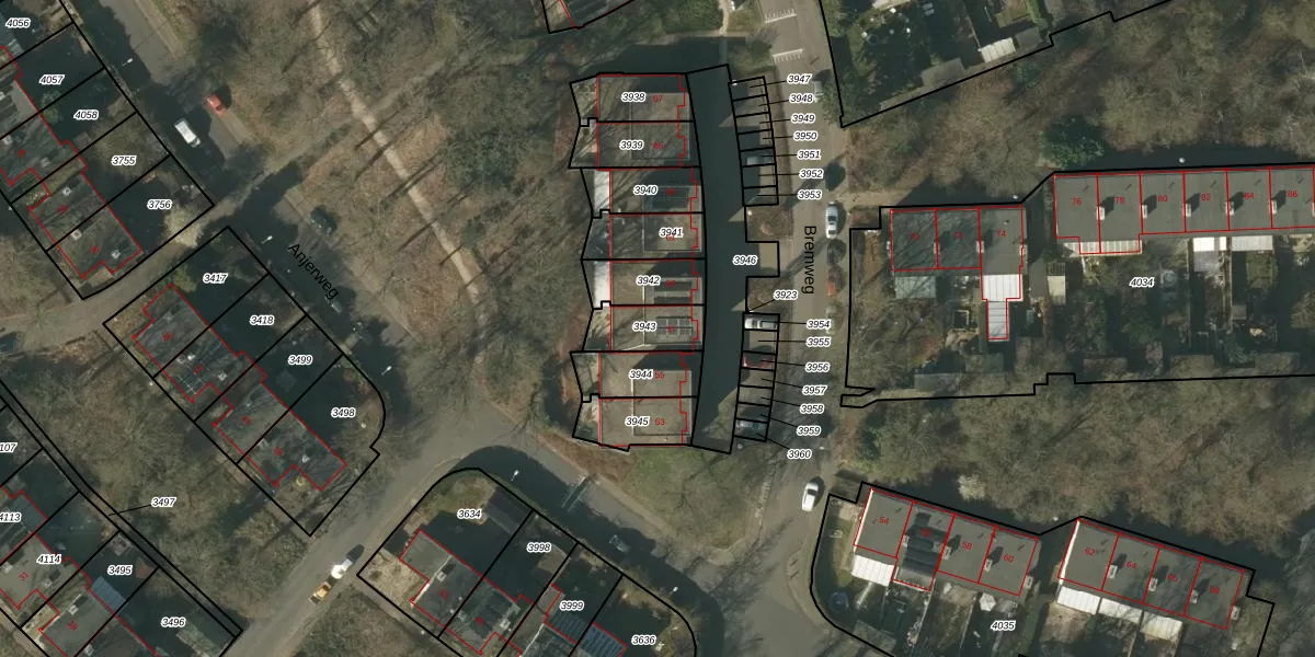 Gebruik de zoekbalk of klik op een perceel voor informatie over de adressen binnen dit perceel.