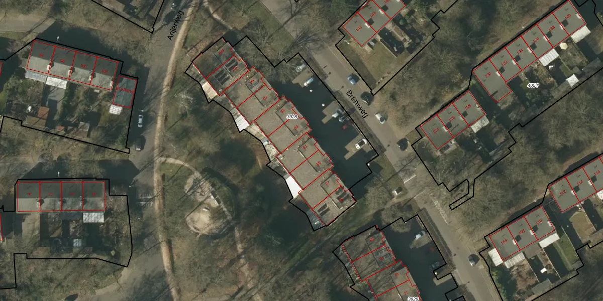 Het perceel waarop Bremweg 91 staat heeft een oppervlakte van 1890 m². Dit is een zeer groot perceel. De perceeloppervlakte wordt geregistreerd door het Kadaster. Gedetailleerde informatie over de maten van dit perceel kunt u vinden in het rapport Kadastrale kaart met maatvoering van Bremweg 91.