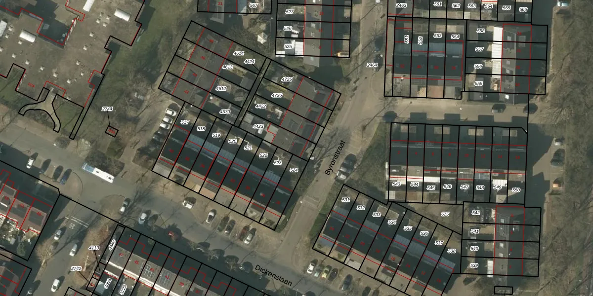 Het perceel waarop Byronstraat 1 staat heeft een oppervlakte van 170 m². Dit is een middelgroot perceel. De perceeloppervlakte wordt geregistreerd door het Kadaster. Gedetailleerde informatie over de maten van dit perceel kunt u vinden in het rapport Kadastrale kaart met maatvoering van Byronstraat 1.