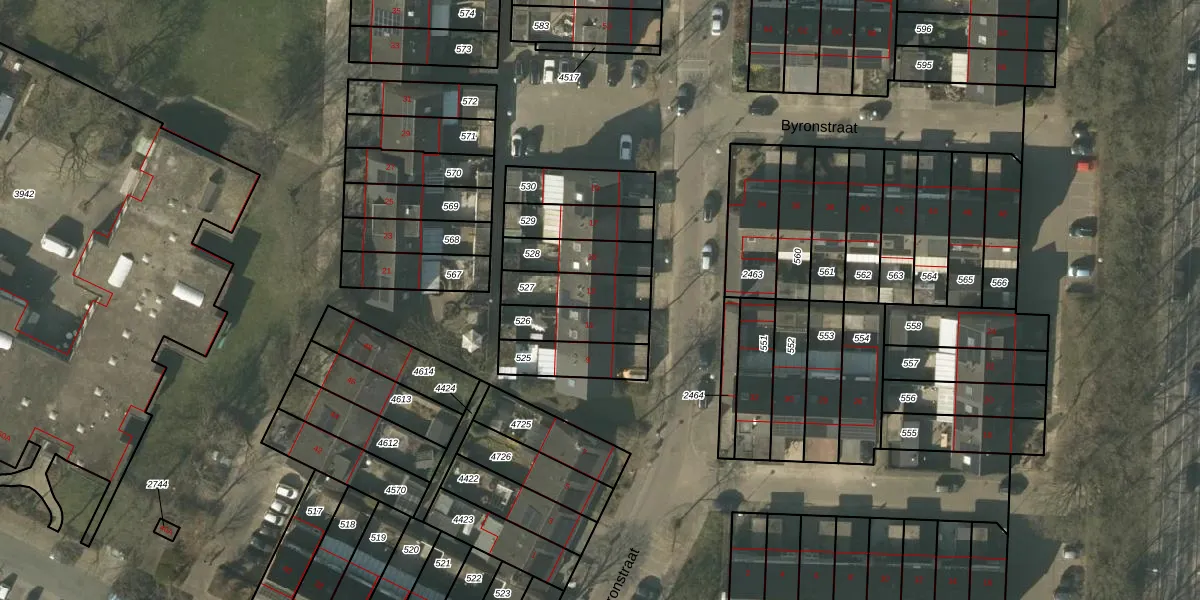 Byronstraat 13 is gelegen op kadastraal perceel VLO00N527. Deze kadastrale aanduiding is uniek en wordt gebruikt door het Kadaster om eigendomsrechten en andere zakelijke rechten vast te leggen. Het perceel maakt onderdeel uit van de kadastrale gemeente Venlo.