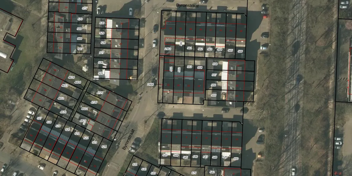 Byronstraat 30 is gelegen op kadastraal perceel VLO00N552. Deze kadastrale aanduiding is uniek en wordt gebruikt door het Kadaster om eigendomsrechten en andere zakelijke rechten vast te leggen. Het perceel maakt onderdeel uit van de kadastrale gemeente Venlo.