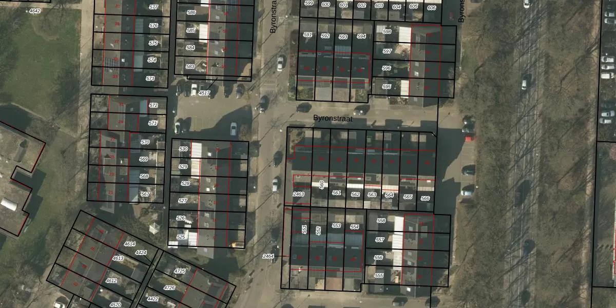 Byronstraat 34 is gelegen op kadastraal perceel VLO00N2463. Deze kadastrale aanduiding is uniek en wordt gebruikt door het Kadaster om eigendomsrechten en andere zakelijke rechten vast te leggen. Het perceel maakt onderdeel uit van de kadastrale gemeente Venlo.