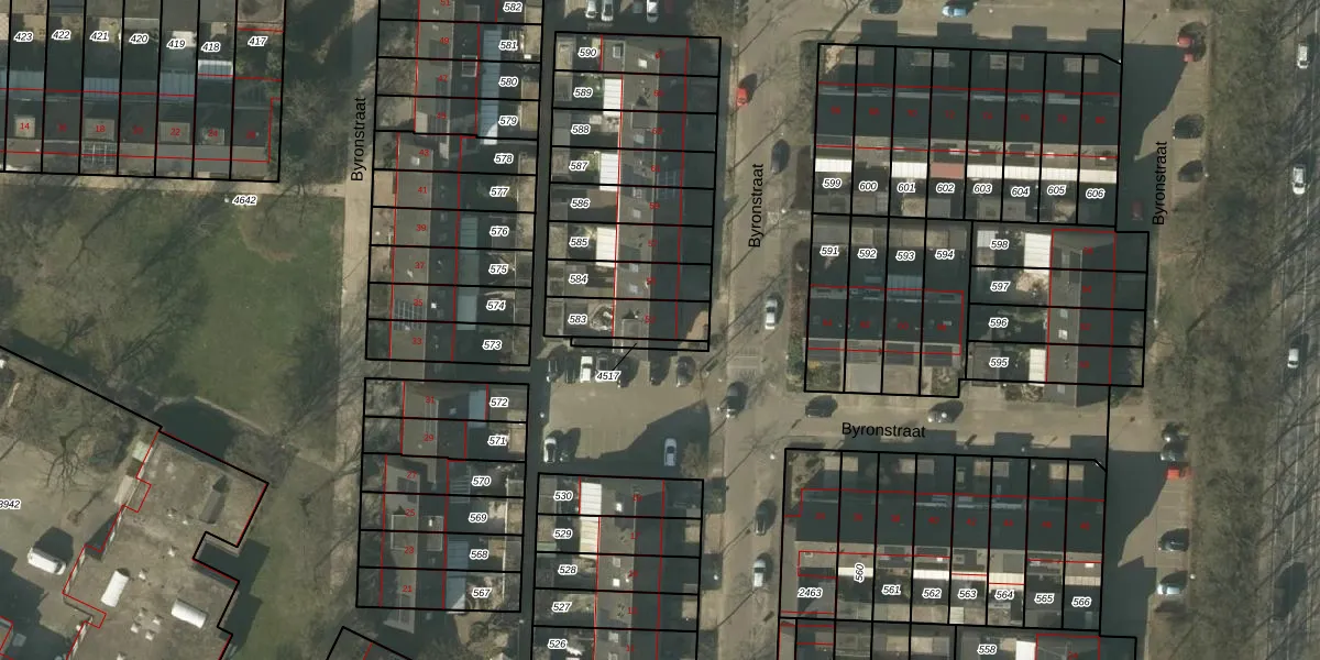 Byronstraat 53 is gelegen op kadastraal perceel VLO00N583. Deze kadastrale aanduiding is uniek en wordt gebruikt door het Kadaster om eigendomsrechten en andere zakelijke rechten vast te leggen. Het perceel maakt onderdeel uit van de kadastrale gemeente Venlo.