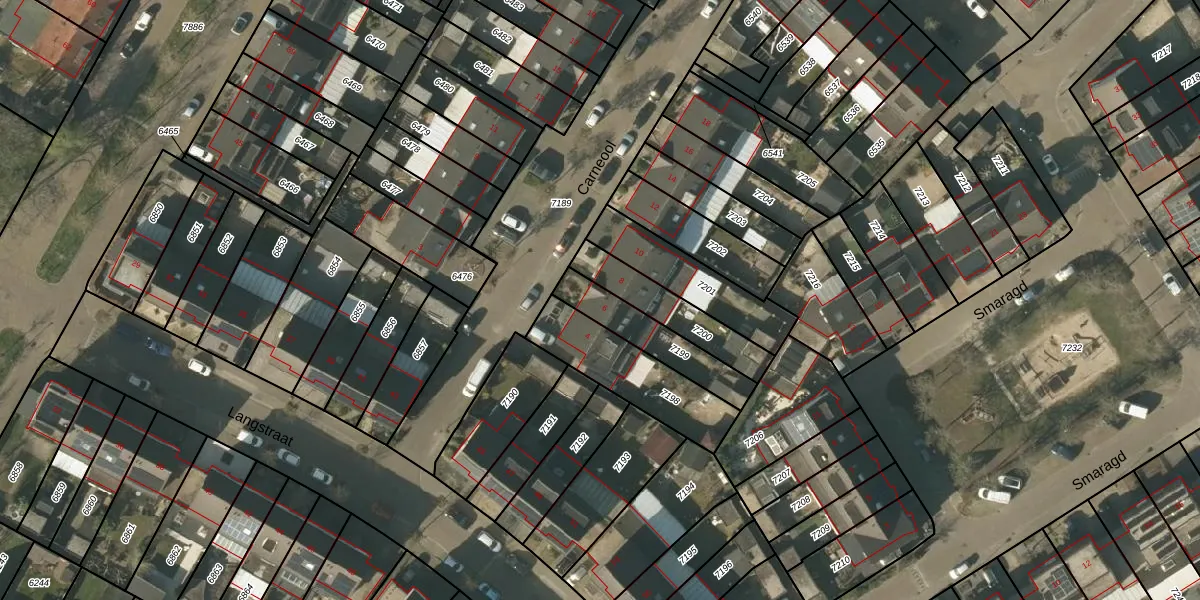 Het perceel waarop Carneool 6 staat heeft een oppervlakte van 200 m². Dit is een middelgroot perceel. De perceeloppervlakte wordt geregistreerd door het Kadaster. Gedetailleerde informatie over de maten van dit perceel kunt u vinden in het rapport Kadastrale kaart met maatvoering van Carneool 6.