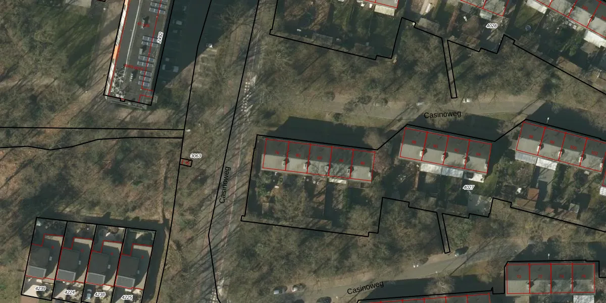 Het perceel waarop Casinoweg 80 staat heeft een oppervlakte van 3395 m². Dit is een zeer groot perceel. De perceeloppervlakte wordt geregistreerd door het Kadaster. Gedetailleerde informatie over de maten van dit perceel kunt u vinden in het rapport Kadastrale kaart met maatvoering van Casinoweg 80.
