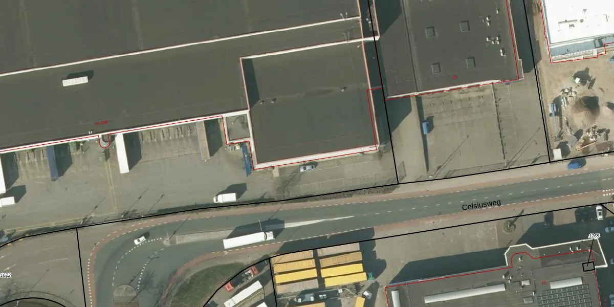 Het perceel waarop Celsiusweg 20-B staat heeft een oppervlakte van 2,0 ha. Dit is een zeer groot perceel. De perceeloppervlakte wordt geregistreerd door het Kadaster. Gedetailleerde informatie over de maten van dit perceel kunt u vinden in het rapport Kadastrale kaart met maatvoering van Celsiusweg 20-B.
