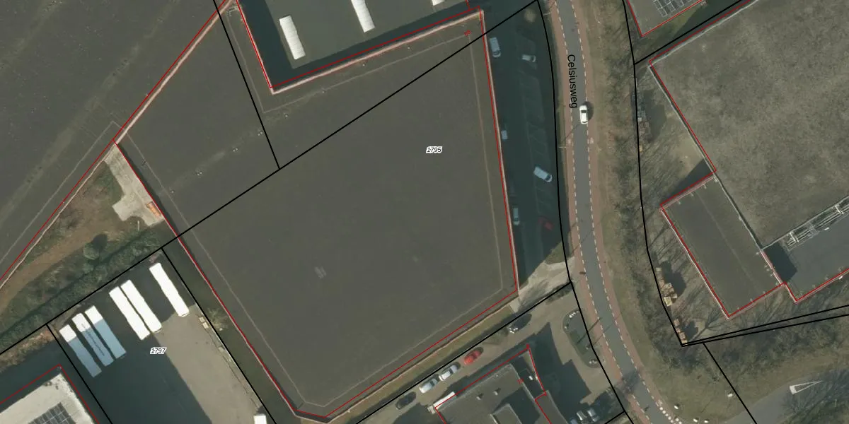 Het perceel waarop Celsiusweg 68 staat heeft een oppervlakte van 5505 m². Dit is een zeer groot perceel. De perceeloppervlakte wordt geregistreerd door het Kadaster. Gedetailleerde informatie over de maten van dit perceel kunt u vinden in het rapport Kadastrale kaart met maatvoering van Celsiusweg 68.