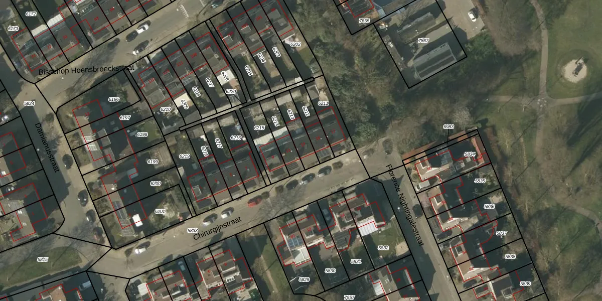 Chirurgijnstraat 13 is gelegen op kadastraal perceel VLO00A6213. Deze kadastrale aanduiding is uniek en wordt gebruikt door het Kadaster om eigendomsrechten en andere zakelijke rechten vast te leggen. Het perceel maakt onderdeel uit van de kadastrale gemeente Venlo.